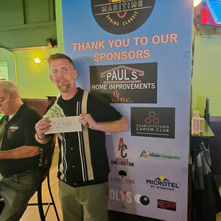 Thank you to all the amazing people that helped support this event including, our sponsors for providing door prizes and monies towards the payouts, Dooly’s Summerside and their amazing staff for hosting, Reid Virtue and Ambush cues, Chris Dempsey for paying it forward with a booze raffle, NBBA for the use of the Predator balls, PEIBA for endorsing and sanctioning, Kyle Richard for arriving on the Wednesday to give lessons to some of our local players, Jaxon Arsenault for helping man the tournament desk on Saturday, and Michelle Unis and family for baking snacks and making the chili.